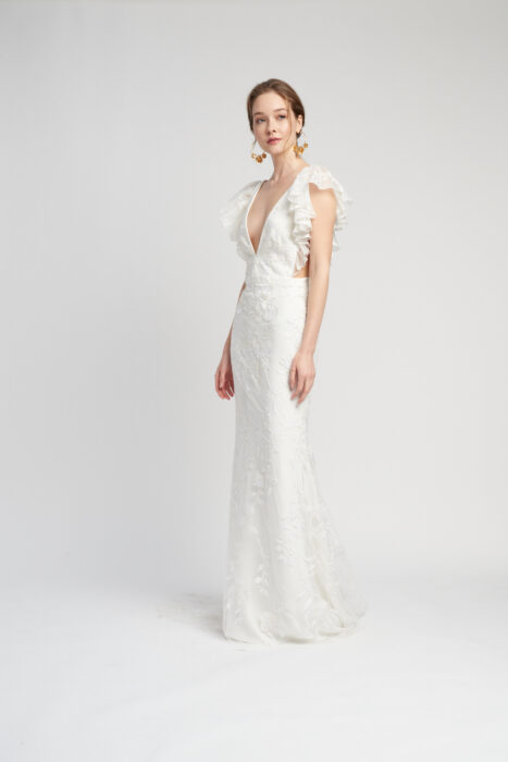 Whether you are preserving the spirit of your initial event or leaning into the family-centered outdoor atmosphere, we have curated a selection of gowns that are sure to complement the backyard soirée you are envisioning. Included in the gallery above are dresses of all styles—some made for the bride with a flair for the dramatic, and others tailor-fit for an outdoor garden party. Each would wear beautifully on a beaming bride walking beneath the canopy of trees in her family’s backyard.