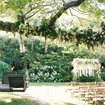 Courtney Carter envisioned perfect spring weather for her wedding to Farzin Dinyarian, but the forecast was 100 percent chance of April showers. They took a chance on the outdoor ceremony, and halfway through, it started sprinkling. Umbrellas saved the day for both the couple and guests while adding an adorable aesthetic to the ceremony on April 29, 2017. Their recessional song, “Here Comes the Sun,” felt more than appropriate for their love and their day.