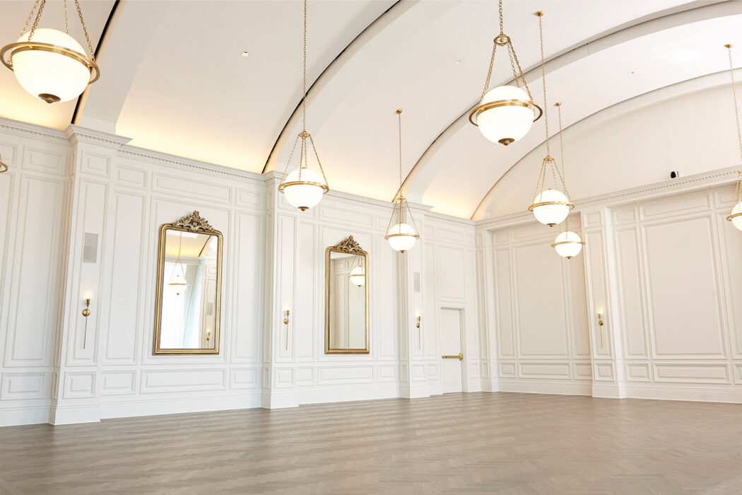 The soaring barrel-vaulted ceilings, ivory paneled walls, herringbone parquet floors, and gilded accents…have you traveled to the center of the City of Light? No. But will your photos look like you did? Oui. Francophiles will adore this timeless, light-filled space—renovated in 2017—that can host up to 300 guests.