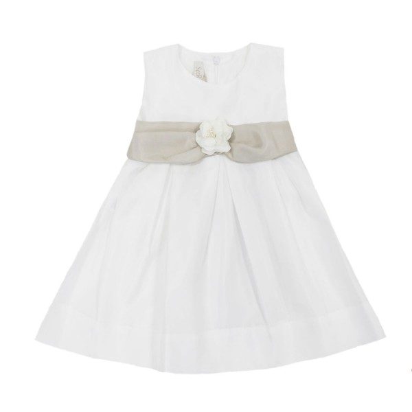 “The contrasting sash and flower detailing make the Emma Dress a fun piece for little girls to whirl and twirl in while still exuding a sophisticated and timeless feel,” Adilova says. “While modern weddings do tend to be more monochromatic and muted, I think adding playful elements of color adds dimension and flare. Crafted in soft satin, the Hucklebones bow will be an accessory favorite for years to come.”