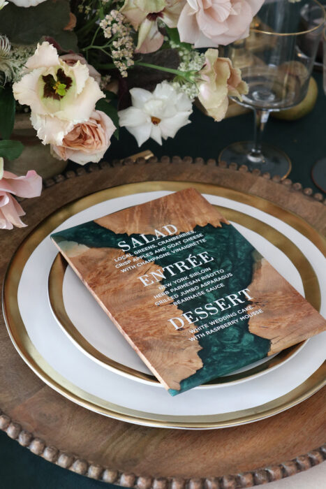 Lastly, the day-of goods should show a little more detail and personality but still have that design thread running through them. Whether it’s the color palette on your napkins or your wedding theme creatively reflected in your signage, you can work with your stationery designer to come up with ways to surprise and delight your guests. You might be surprised at how the little details make a significant impact.
