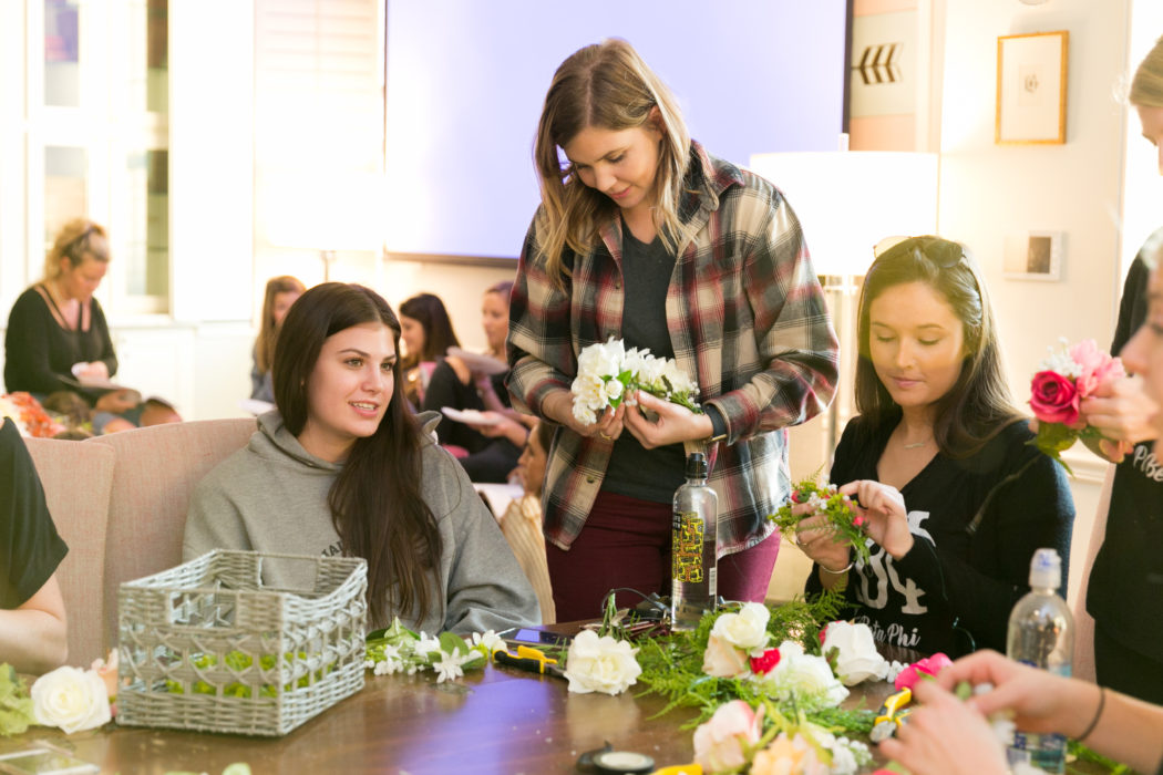 What happens when you put D Weddings and a sorority together? A whole lotta flower crowns and fun! At our first ever D Weddings sisterhood event, we talked all things careers and weddings, made at least a hundred flower crowns, and, of course, ate cake. Pop Parties put together the theme and tablescape, Branching Out Floral taught us everything you could know about floral arrangements, Posh Cakes created a nom-worthy champagne-flavored cake, and Tracy Autem of Lightly Photography captured it all.