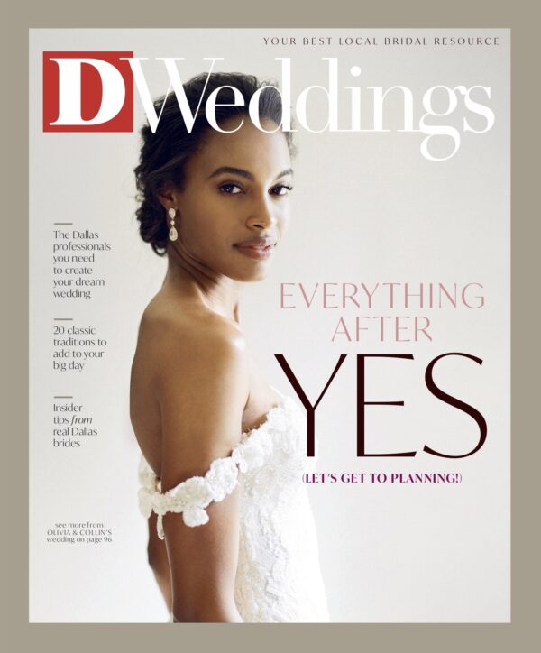 So what can you expect to see as you turn the pages? Well first and foremost, 15 real weddings. With pastels dominating, every feature will transport you to warmer weather and right into your dream spring affair. The weddings span from The Rosewood Mansion on Turtle Creek to Colorado, Florida, and South Carolina, right back to Dallas at the Adolphus, Knotting Hill Place, a few private residences, and beyond.