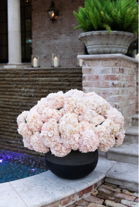 Flower arrangements by Brad Duren accent the space without overpowering it and add a pop of color, accenting the surrounding space with its simplicity. Homes usually aren’t a blank canvas like other venues, so keeping decorations simple keep the space from being overwhelming.