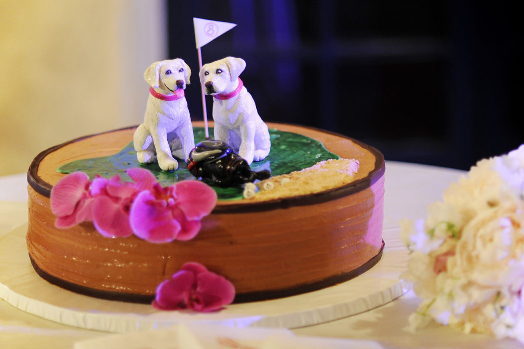Take a page out of Katie Jones and John Templeton’s book and feature your dogs with personalized decor items, or Carolyn Roshek and David Schultz’s groom’s cake featuring their beloved white labs, Milan and Parris. Or, if you’ve accidentally booked a venue with a no-pet policy, follow in Abby Brehm and Robert Cowlishaw’s footsteps and create a life-size cutout—perfect for photo opts and dance floor props.