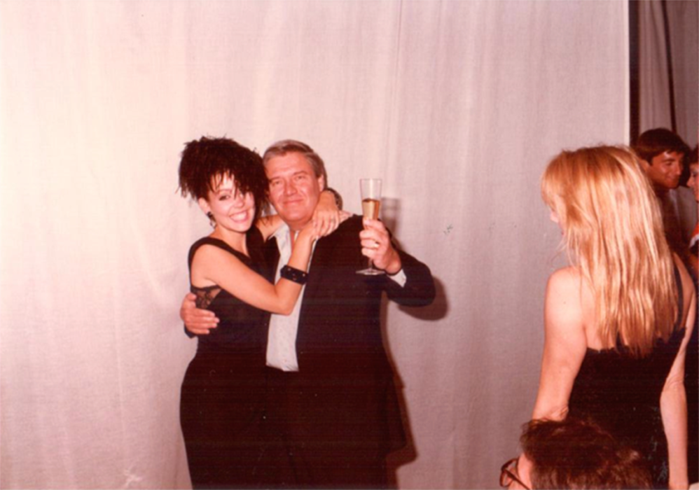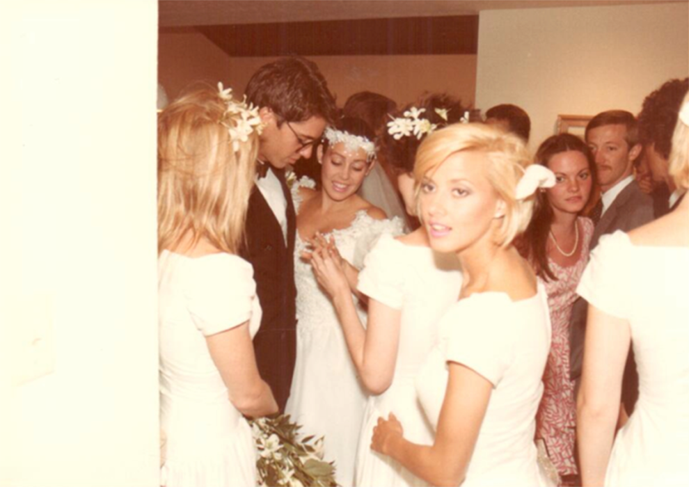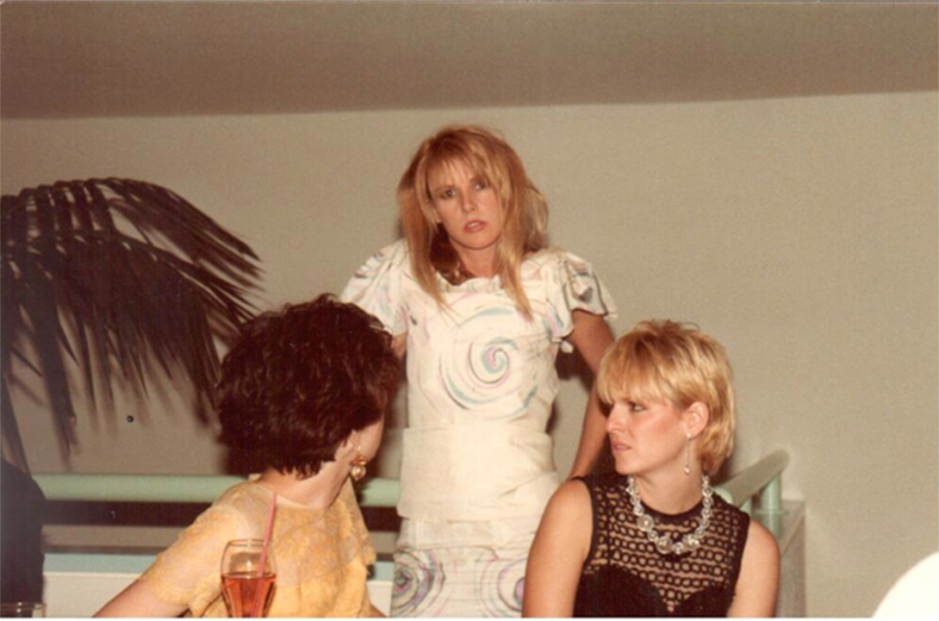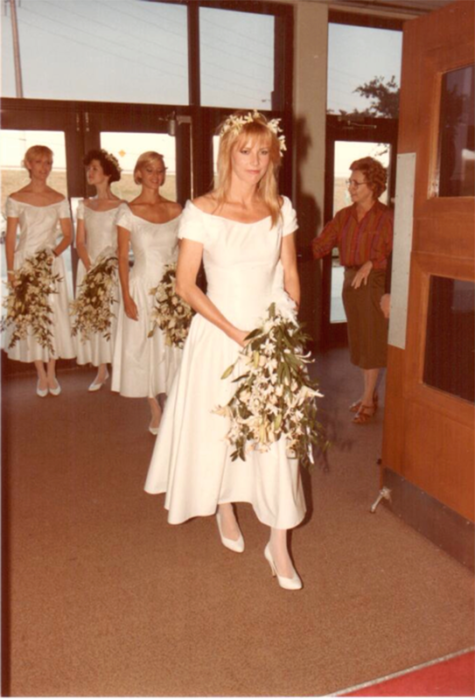 Michelle and Bernard’s engagement party took place the night before the club officially opened. Their guest list was a “who’s who” roster of Dallas at one of its most interesting moments. “Two of our other dear friends, Valarie Kennedy and Chuck Durrett were a part of the original group that opened the club. They were in our wedding too. Our good friend, the artist Dan Rizzie, did the artwork on the columns inside the club,” says Michelle. “So all in all, we had a lot of friends involved in the beginning.” The bride wore black: Michelle chose a figure-sculpting Azzadine Alaia dress for the occasion, which she complemented with black accessories, including a vintage feathered 1960s Frank Olive hat. “It was an epic engagement party!” she says.