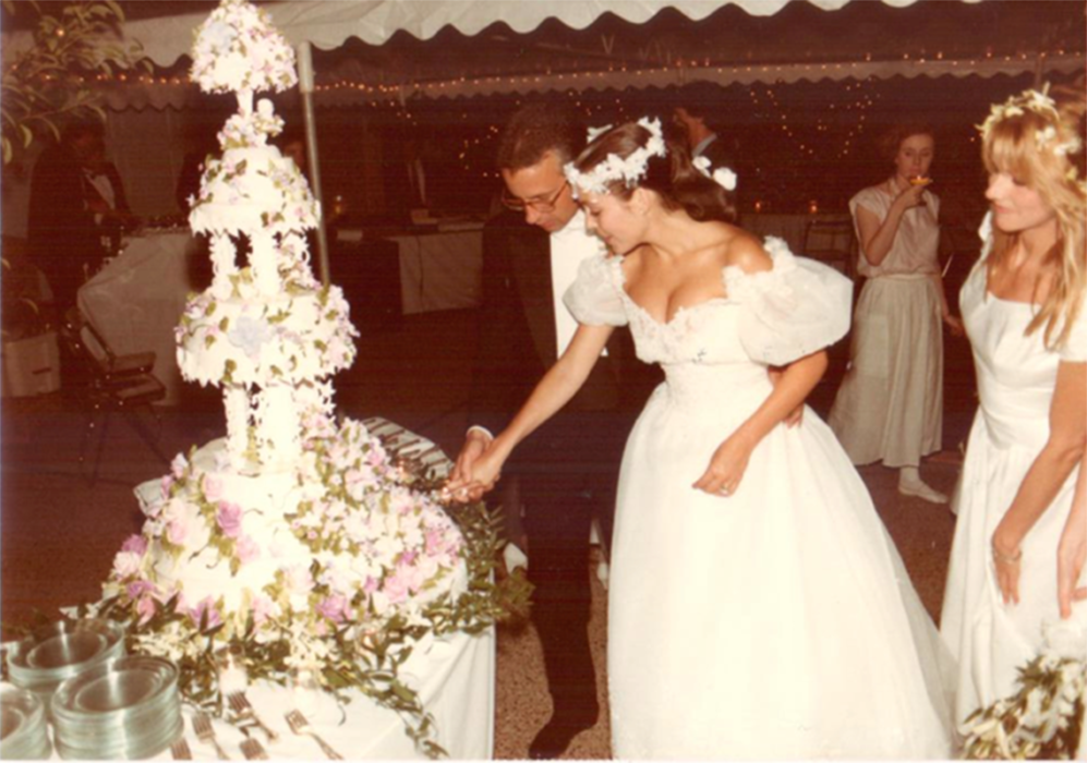 For her wedding dress, Michelle went custom as well. Like most brides in 1984, Princess Diana’s wedding to Prince Charles was a chief source of inspiration. After finding a local dressmaker, her mother, who is a painter, drew out the design. “I think for more than a month, little tiny seed pearls were sewn all over the bottom,” Michelle recalls.