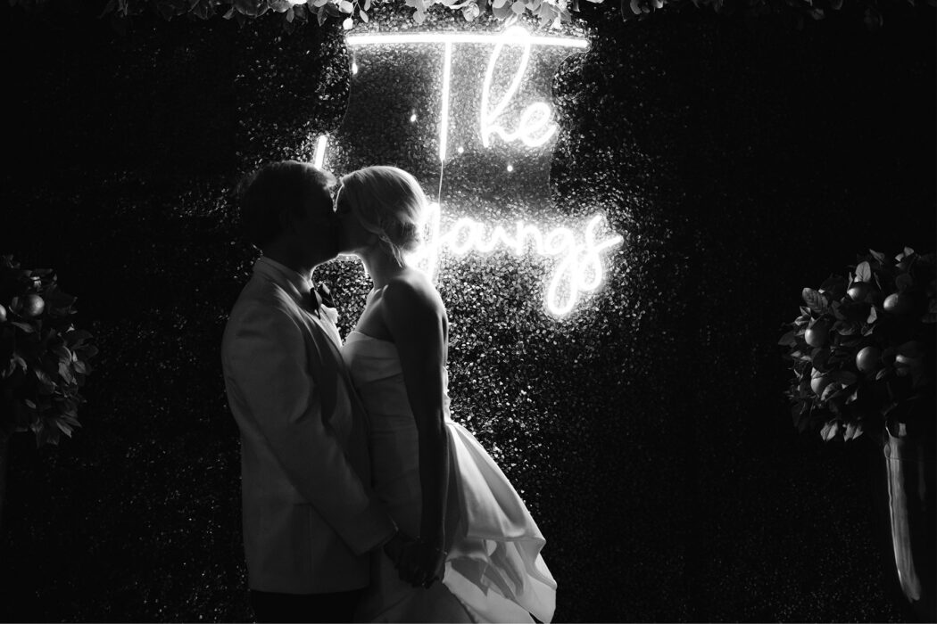 Kathleen Baird and Marshall Young Jr. bask in the glow of their new shared moniker, thanks to the neon sign commissioned by planner Melanie Tatum of Melanie Tatum Events from Australian maker Little Pineapple Neon. Locally, Neon of Dallas creates custom pieces that make fun wedding-day keepsakes. Don’t want to commit? They offer rentable options, too!