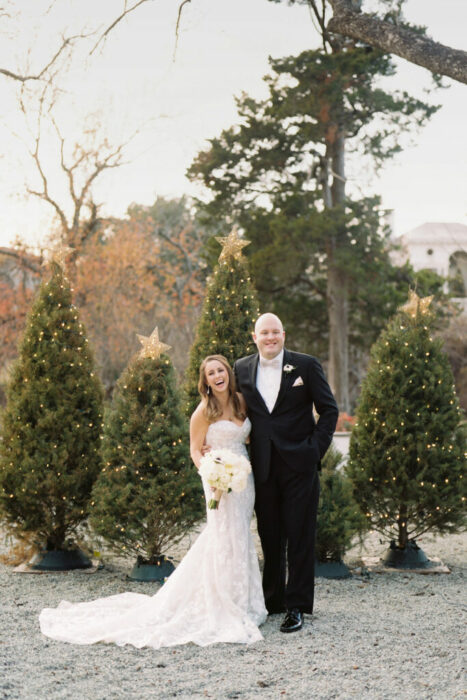 Our engagement in Colorado ended up inspiring our wedding theme. Since my fiancé, John, got down on one knee in the brisk chill of January, I thought, what could be more fitting than a winter wonderland celebration? I envisioned flocked pine trees, white rose bouquets accented with greenery and pinecones, fluffy fur shawls, and wintry accents at every corner. It would be an ode to my new last name—White—and our romantic engagement in the mountains.