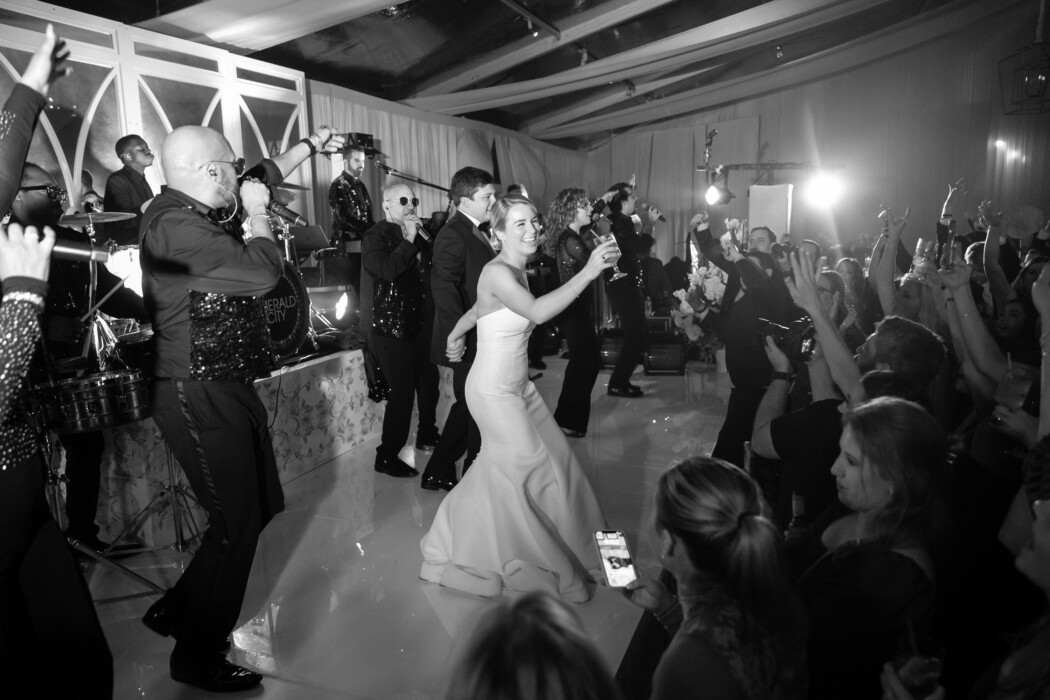 You’ve just said “I do,” danced together for the first time as a married couple, and sliced into your wedding cake…it’s time to get the party started. One of the top concerns many couples have for their reception is making sure their big day is an enjoyable event for everyone. Whether you’re going for a relaxed, dinner-party vibe or want everyone up on their feet boogieing to “Sweet Caroline,” a band who knows how to read the room can make that happen and more. We spoke with Carl Poposki of Emerald City Bands on what exactly couples should be looking for when booking their wedding band, how to handle off-the-cuff guest requests, and the advantage of having a live band!