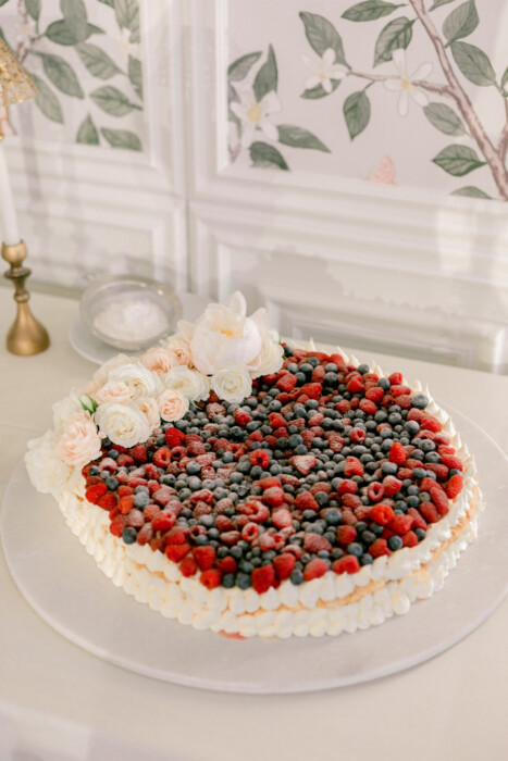 Lauren: The wedding cake was three tiers, adorned with delicate piping that echoed the romantic details of the rest of the day. In contrast, the groom’s cake was a nod to heritage and flavor: a classic Italian millefoglie cake, covered in colorful berries and powdered sugar.