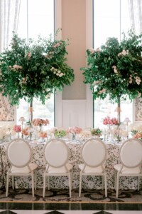 Lauren: Our biggest desire with florals was to make each arrangement feel like it truly belonged in the space. From the organic arch over the ballroom entrance to the life-size trees around the reception space, it felt as if the flowers had simply grown into place.