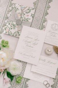 Lauren: My mom and mother-in-law truly put in so much work to make sure our invitations were everything we envisioned and more! We had the wallpaper that was used throughout the wedding turned into vellum to wrap the invitations, a truly special touch that showed how much we cared about each detail.