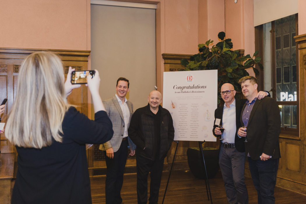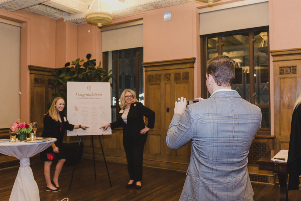 Cheers to a night of toasting to being the best. On Tuesday December 11 the historic venue, 400 North Ervay, opened their famous “Courtroom” space to host the 35 businesses named a 2018 D Weddings Publisher’s Best. This night recognized the Publisher’s Best companies that have been loyal partners for more than 10 years. Guests were greeted with champagne, the Lab photo booth, and an opportunity to toast their achievements. Food Glorious Food served addicting, bite-sized crab and lobster cakes, in addition to an array of flavorful passed hors d’oeuvres. Andy Austin played festive tunes from the Judges’ chamber and Bella Flora designed eye-catching arrangements displayed throughout the space. Guests included the best venues, florists, bridal shops, photographers, and more.