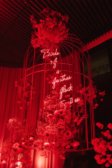 For the place settings, the GRO Designs team brought in custom table lamps with fringe detailing to add a swanky dinner-club feel to the room. “They made it feel like a speakeasy,” says Francesca. “It was absolutely perfect and exactly what we wanted.”