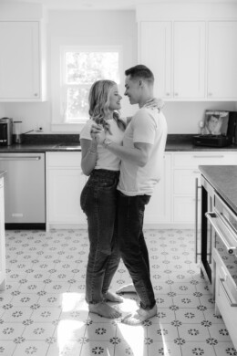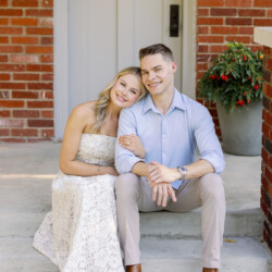 After Tristan Byram proposed to his girlfriend of three years, Emma Huels, they couldn’t wait to begin their life together. The first order of business was purchasing a home, which, they decided, would serve as the perfect place to take their engagement photos just weeks later. Though they hadn’t bought much in the way of furniture yet, the pair popped open a bottle of wine, consulted their growing vinyl collection, and laughed and danced their way through the session to the tune of a Dean Martin record. “We are so happy we are going to be able to look back at these photos in 10, 20, 50 years and reflect not only on the photos themselves but also on the house and all the happy memories we will have created while living here,” Emma says. The pair will wed on October 3, 2026, at The Adolphus Hotel.