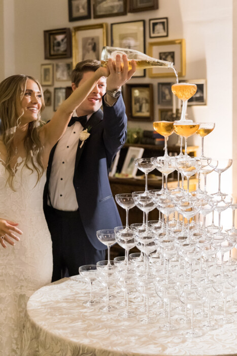 Bring on the bubbly! We’ve seen throwback champagne towers at a number of recent nuptials—including Katherine Anderson and Rob Truelson’s reception at The Mason Dallas, which was planned by Whitney Bailey of Engaged Events. Pop, fizz, pour, then clink!