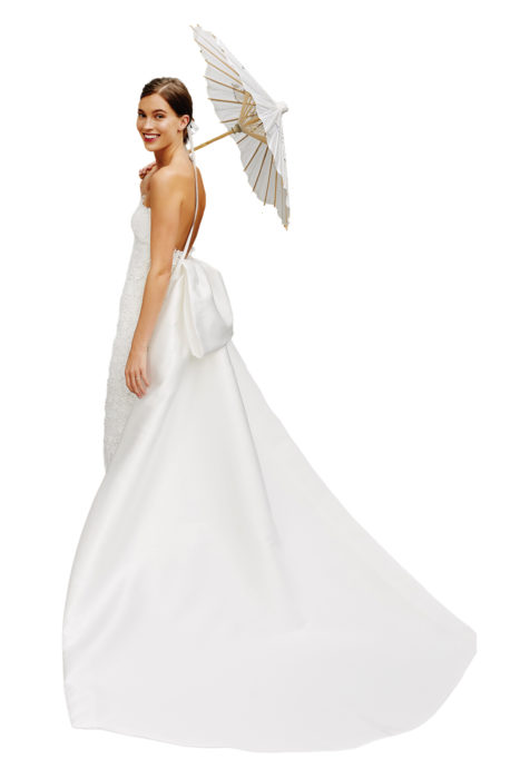 Romantic We’re hopelessly in love with the flowing ribbon detail on the back of this gown. Anne Barge
