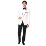 “Slimmer fitting jackets and trimmer pants without pleats. I prefer to wear velvet slippers with my tux as opposed to the traditional patent leather. Also, many grooms are designing their own jacket linings for custom tuxedos.”