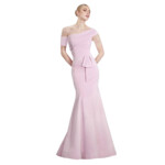 “One-shoulder silhouettes continue to be popular, but we’re also seeing more clients choosing strapless gowns than in the past. Florals and jacquards are also still in demand.”