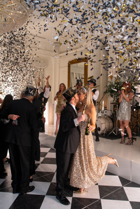 Early in their courtship, Cassie LaMere and Andrew Knieberg spent a romantic New Year’s Eve holiday in Paris. After a day of roaming the Musée d’Orsay, they snapped a photo in front of the iconic clock (which would later become the inspiration for their save-the-date). As they walked out of the museum, they heard a musician playing “La Vie en Rose.” “It was the most magical Paris day,” says Cassie. That trip inspired the couple’s New Year’s Eve wedding four years later. Cassie, an events planner based in Austin, envisioned an intimate black-tie dinner party. After a four-course French-inspired meal, the couple danced the night away until the clock struck midnight. Says Cassie, “Being able to ring in the New Year with everyone you love is so rare.”