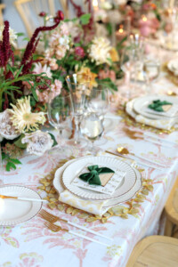 Alexa added foil stamping to the menus for a touch of shine and tied them with velvet ribbon that matched the groom’s tuxedo.