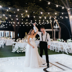 As evening fell, guests dined beneath twinkle lights and danced to a lively performance by The Manhattan Band, creating an unforgettable celebration. Every moment captured the essence of Brighton Abbey: refined, radiant, and filled with joy.
