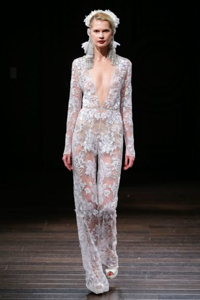 Naeem Khan has a worldly take on bridal: his gowns (and sometimes, jumpsuits) combine his passion for international cultures with impressive embroidery. He made a name for himself when he designed a gown for Michelle Obama’s first state dinner in 2009.