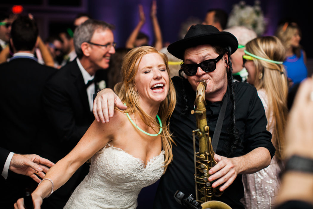 Since its establishment in 1983, Emerald City Band is the most sought-after wedding band in the industry. This one-of-a-kind group has performed weddings throughout the Dallas-Fort Worth area and around the country. Emerald City has been asked to entertain receptions for such notables as Mark Cuban, Emmitt Smith, Angie Harmon, Jordan Spieth to name a few. They have also performed for President Bush at the White House twice, Oprah Winfrey, Tony Romo, Jerry Jones, the Super Bowl XLV. They count American Airlines, Southwest Airlines, and Apple among their prestigious clients. This 13-piece high-energy band takes the music off the stage and into the crowd. Using more than 36 years of history in the industry, Emerald City knows how to customize every event to make it a one-of-a-kind experience. Find out what “once in a lifetime” sounds like.