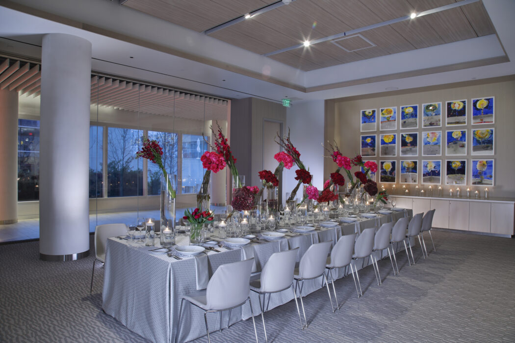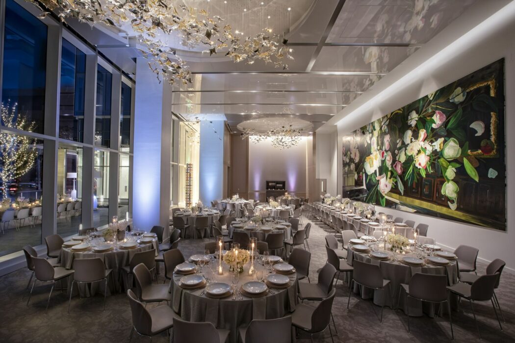 Designed by award-winning firms HKS Inc and Bentel & Bentel, the hotel offers more than 11,000 square feet of sophisticated event space, which includes the stunning, 2,500-square-foot Grand HALL ballroom designed with spectacular Lasvit chandeliers, a large, commissioned piece by acclaimed artist Clare Woods and floor-to-ceiling windows.