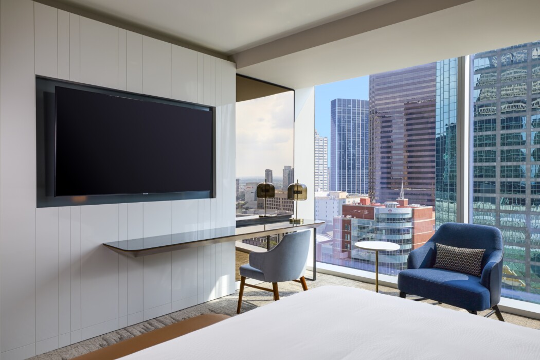 Set in Dallas’s vibrant Arts District, the JW Marriott Dallas Arts District blends modern amenities and classic service in this new hotel. Benefit from our hotels excellent location in Dallas’s bustling Arts District offering easy access to Downtown Dallas, Klyde Warren Park, Dallas Convention Center, and countless live performance venues. Our on-site restaurants showcase our culinary expertise. Try 800 North for a finely crafted coffee experience or visit Margaret’s for classic dishes made with regional flavors for breakfast, lunch and dinner. After dinner, relax in a modern hotel room or suite with stylish furnishings, luxury bedding, a well-lit work desk and city views. Maintain your workout routine in our hotel fitness center or enjoy a swim in our rooftop pool overlooking the city skyline. Our event spaces comprise 20,000 square feet of space filled with natural light and sweeping city views, offering unforgettable settings for events near Downtown Dallas. Located in downtown, walking distance to office towers, we’re on the DART light-rail line offering easy access to the city’s top attractions.. Take luxury to a new level, at our hotel in downtown Dallas TX.