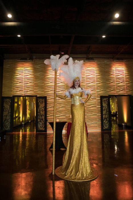 Vouv Event Space, the contemporary and self-described “industrial chic” venue in Farmers Branch, boasts an expansive lobby, central ballroom, and chapel room washed in sometimes metallic, neutral tones. Flexible layouts are available for the couple who want to curate their ideal wedding experience. All food and drink is provided by exclusive caterer Culinary Art Catering.
