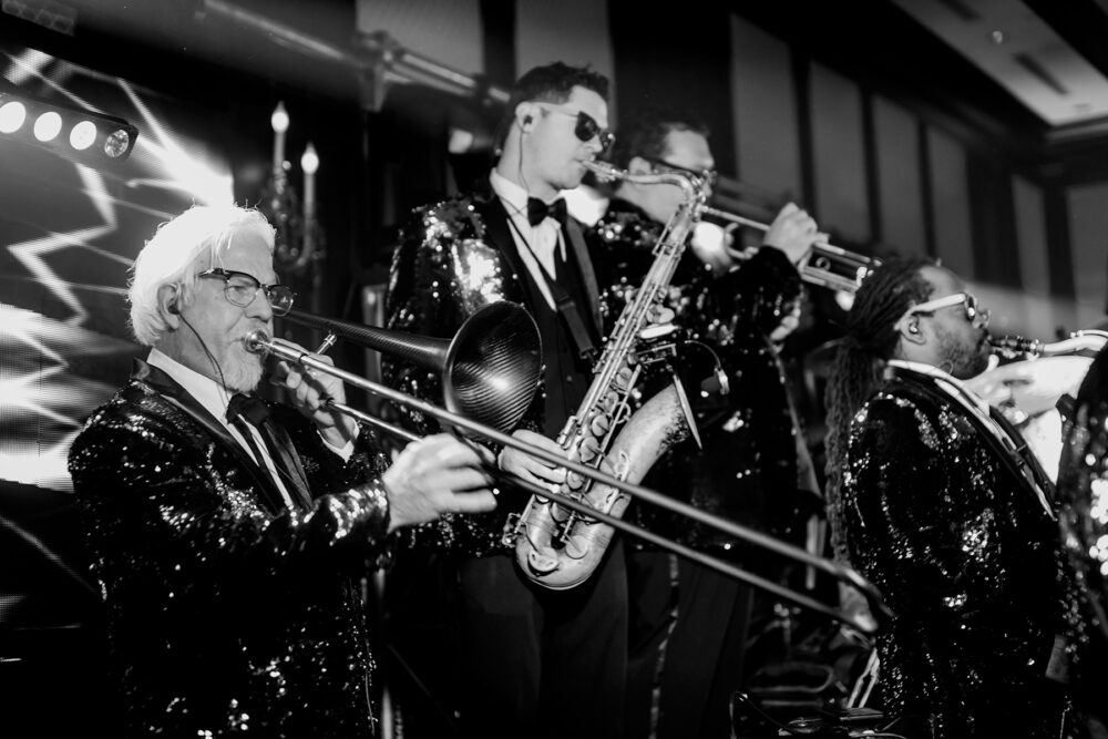 Deejays know how to fire up a crowd, but there’s something about a big band that’s undeniably joyful. If a swinging horn section is your thing, get inspired by Emerald City Band, who rocked Julie Parma and Tim Doyle’s August 4, 2018, wedding.
