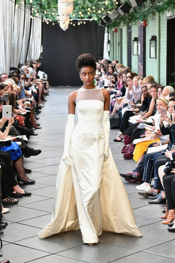 This season was a full one, with 66 dresses spread across two lines, Amsale proper and Amsale Nouvelle. While there was plenty of silk, it was spun in minimal silhouettes, designed to softly accentuate the dip of the collarbone, slope of the shoulder, curve of the back.