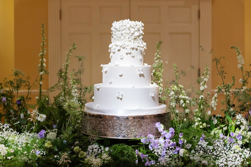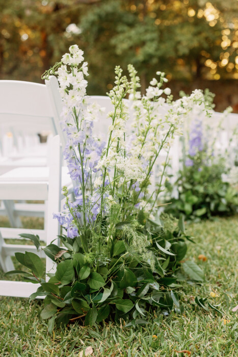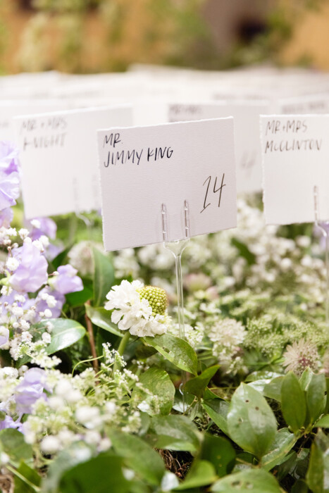 “We really wanted Arlington Hall to feel like it had been overgrown with wildflowers and that the guests were getting to enter into a secret garden for the wedding,” says Jess. “From the smilax and Spanish moss that were hung extra low to the boxwood walls with custom cut-out windows, we tried to make everything feel organic, as if it had been growing for years.”