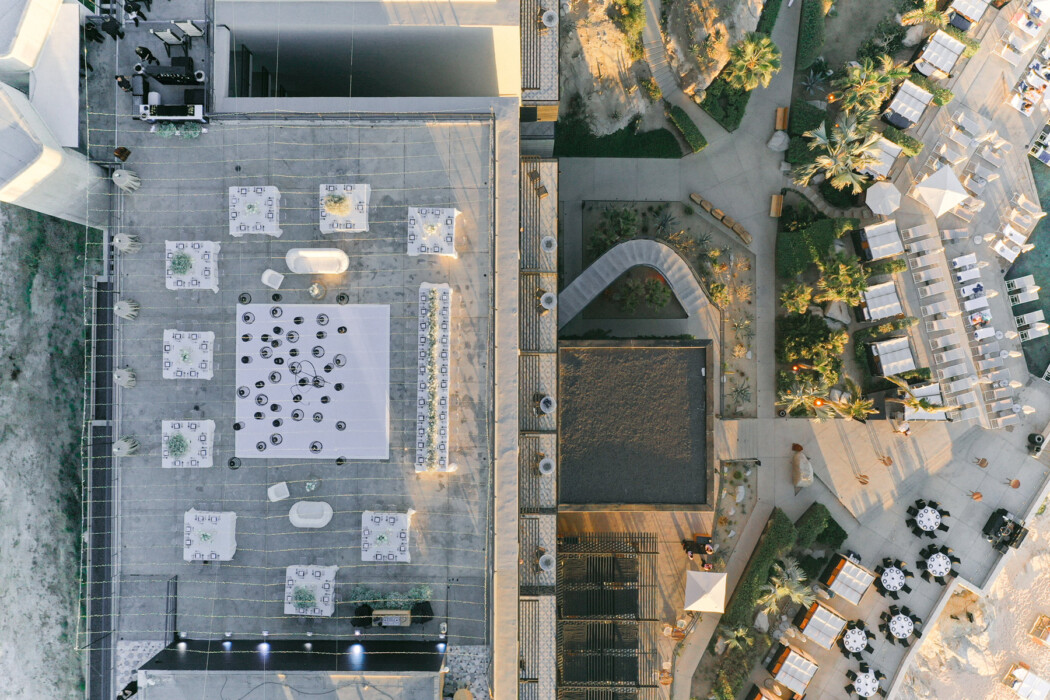 To set the tone for dinner and dancing, Karli brought in a canopy of string lights and lanterns to create a backdrop of a starry sky. “Cabo Wedding Co. sourced the lanterns from local vendors and gave them a custom paint job to match the aesthetic of our event,” she says. “We wanted everything to feel sleek and neutral.”