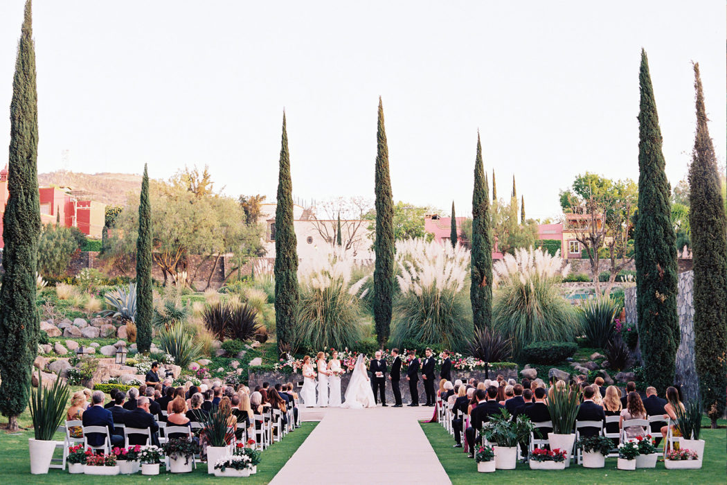 To that end, they used Bows + Arrows for florals, Maitee Miles for hair and makeup, photographer Sarah Kate, and the Jordan Kahn Orchestra—who all hail from Dallas. “Many of them had never been to San Miguel, so they were so excited to go somewhere new, and it really added to the specialness of the day,” says Alex. In addition to Clarke’s expert planning abilities, her intricate knowledge of San Miguel—she vacations there every year—made planning the nuptials from 1,000 miles away a piece of cake.