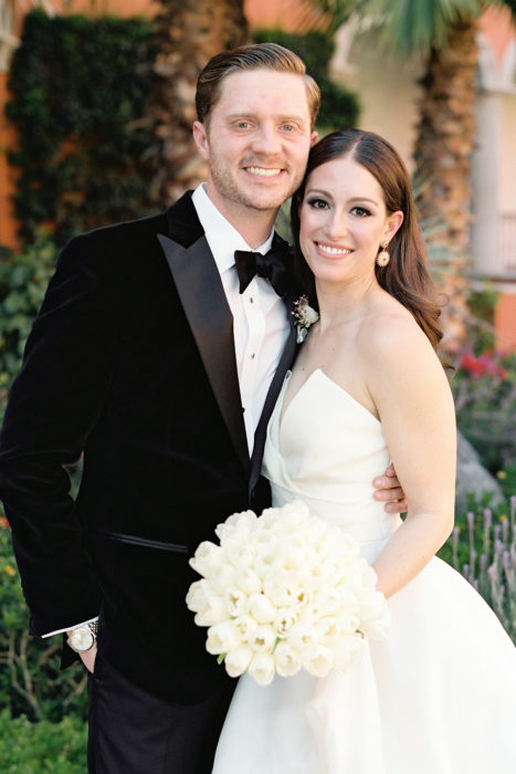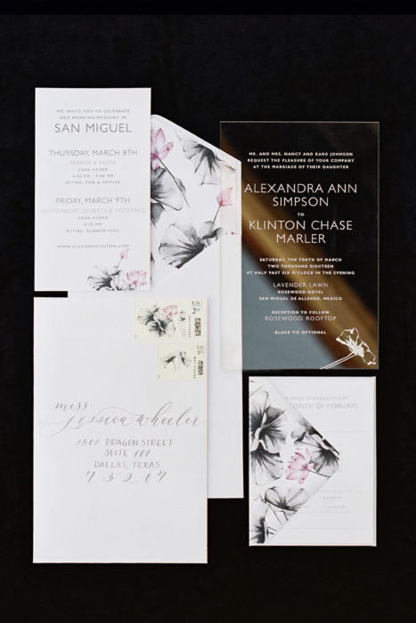 Alex and Klinton’s destination wedding had an at-home feel to it, as they brought along a full roster of Dallas wedding pros, all flawlessly coordinated by planner and designer Emily Clarke. While one of the reasons Alex loves San Miguel is for its “untouched” quality, the flipside of such a remote locale is having fewer area vendors at your disposal. “We would have had to [bring in vendors] from the next closest town. [We figured] if we were asking them to drive or fly in anyway, we might as well bring the people our wedding planner suggested,” she says.
