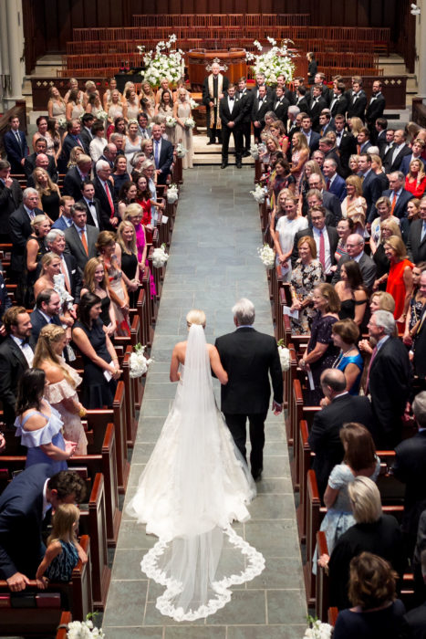 After all the preparations were in place, Alison and Pete said “I do” on September 15, 2018. Out of the whole day, it wasn’t the pomp and circumstance that meant the most to the duo but the little moments in between. “Right when they opened the doors to the ceremony, my dad and I waited a few seconds to walk,” Alison says. “I loved taking a moment to look out into the church and see everyone there. I was in tears shortly after-the feeling of so much love in the room was overwhelming.”