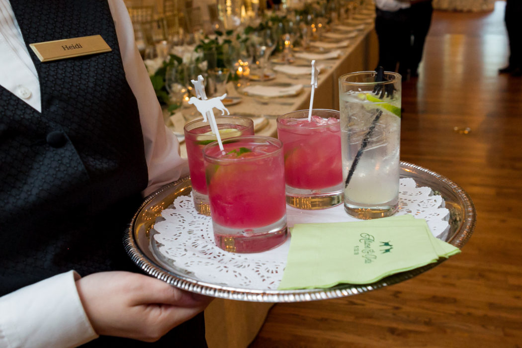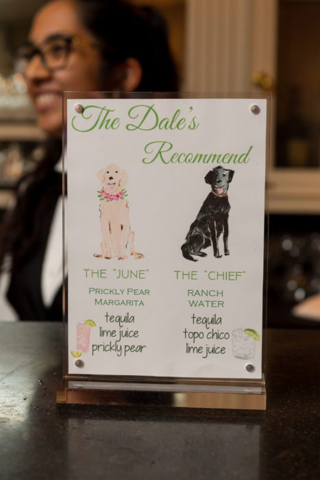 Once the nuptials were complete, the party began. Alison and Pete had planned to add a few of their own twists to typical reception tradition. With Jerry Jeff Walker’s “Woman in Texas” as their first dance, they used an ice cream cart from Baldo’s as their groom’s cake, and mini, plastic, black and white labradors for drink stirrers—an ode to their dogs.