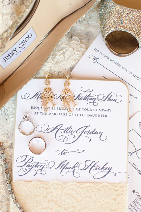 Payton Hickey called on Allie Shea’s family to help him surprise his high-school sweetheart with a ring under the guise of a family photo session at White Rock Lake. When the camera started snapping, he got down on one knee—not for a pose, but for a proposal. Fast forward to April 25, 2015, and the couple once again looked to the Shea family, who hosted the Napa-inspired nuptials for 425 guests at their 30-acre property in Parker, Texas.