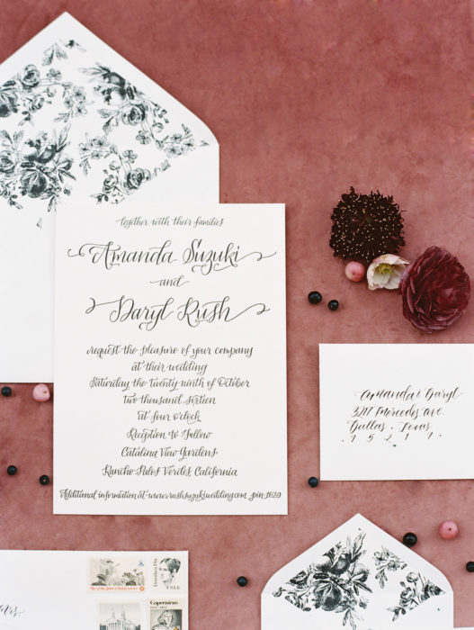 Bella Figura (invitations); Harts and Quills (calligraphy)