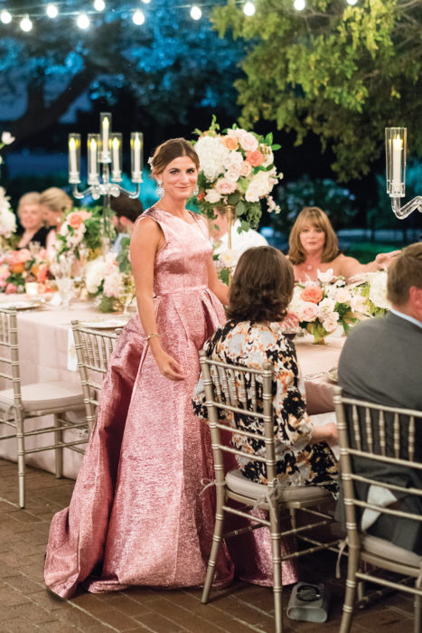 For the reception, the bride wore a beautiful pink gown from Forty Five Ten by Australian designer Alex Perry. Erica, a self-professed lover of fashion and all things pink, paired the gorgeous dress with gold Prada heels.