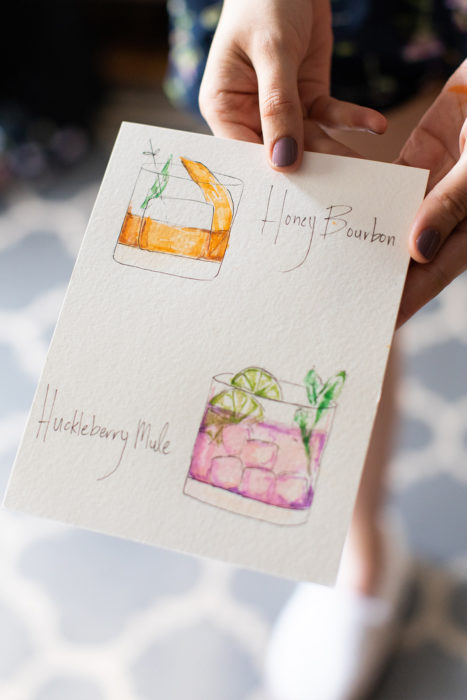 While Anastasia had planned on hand-drawing the cocktail menu, she ran out of time. As a surprise, her two maids of honor drew it for her.