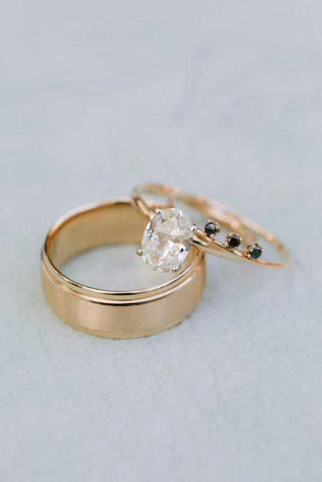 Looking for something nontraditional, Anastasia chose a black diamond wedding band designed by A.M. Thorne.