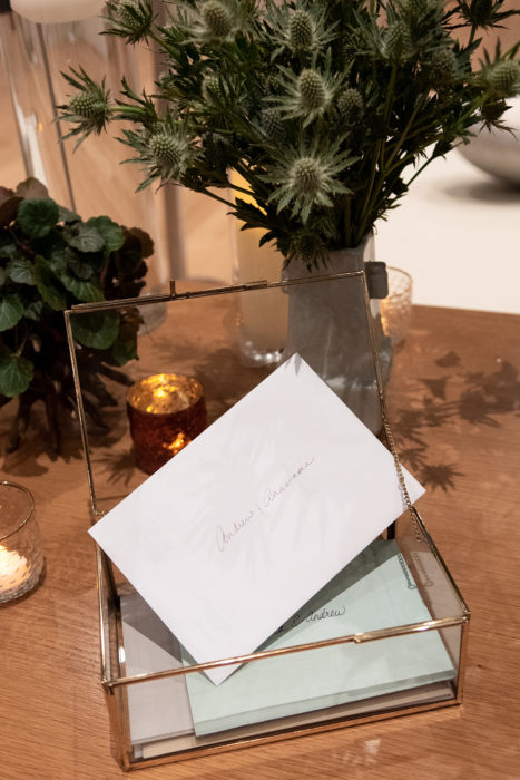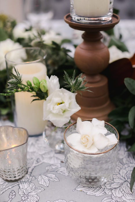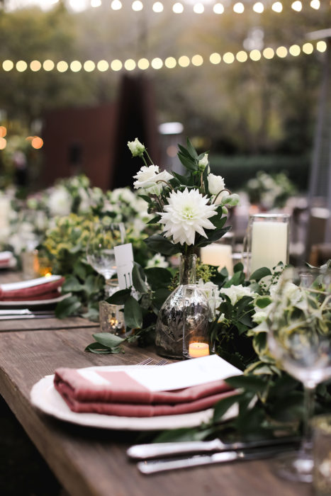 To keep the look of the decor relaxed and casual (like her and Andrew’s personalities), Anastasia and her mother intentionally chose pieces that felt more like home decor than wedding rentals. They also collected pottery and worked with Branching Out to choose items that felt more organic and natural.