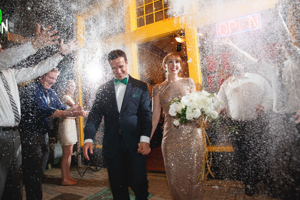 Having spent seven years as a wedding planner, Angela Dupont knew she wanted something completely different for her own nuptials. When she and Benjamin Hall married on June 15, 2014, at Hot Damn, Tamales! in Fort Worth, it was an out-of-the-box event that dismissed tradition at nearly every turn. “No cake cutting, no grand march, no bridal party; the ceremony was after dinner,” Angela says. And the bride most certainly did not wear white.