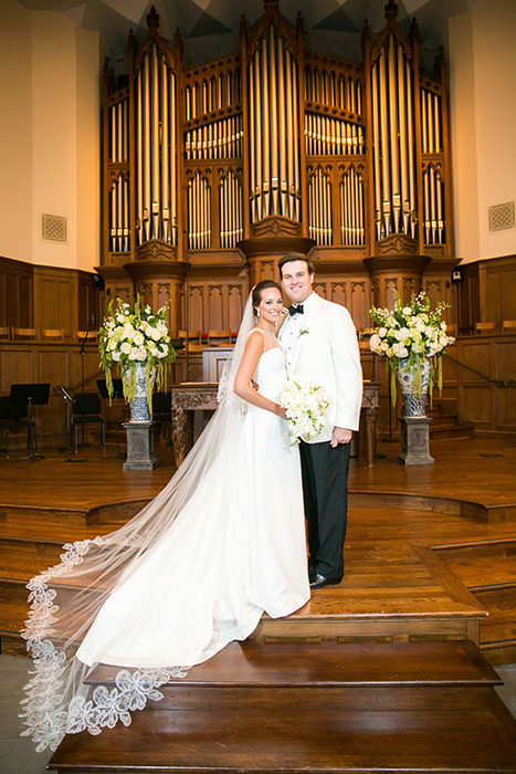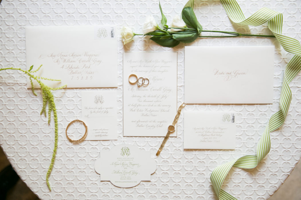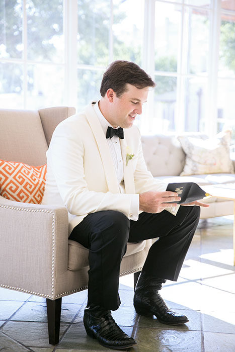 When Will Gray proposed to Anna Waggoner on the banks of the Brazos River, he had family close by to celebrate. At their wedding on July 30, 2016, family and their love of nature continued to inspire, from the private dinner with their parents before the reception to the blue, green, and white color palette. Anna’s butterfly-topped cake also brought the outdoors in: “I wanted a cake that was personal to me,” Anna says.