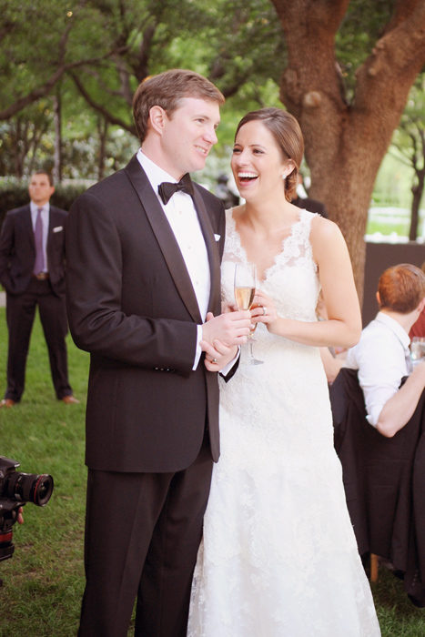 The bride laughs when she recalls how she met her husband, Stuart Tallichet, “really nerdily” at a party before law-school prom. Both were students at SMU when one of their professors threw a kegger, where they started talking. The next day, Stuart asked Ashley to go with him to the Barristers’ Ball, where they hit it off.