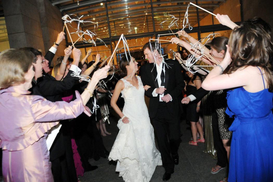 Ashley wasn’t entirely without opinions though. She wanted a spring wedding that incorporated an element of the outdoors. The Nasher Sculpture Garden had an April date open, so the reception venue was set, but the museum does not allow for ceremonies. Emily had recently planned a ceremony in the rotunda at nearby Chase Tower, and that suited Ashley and Stuart just fine.